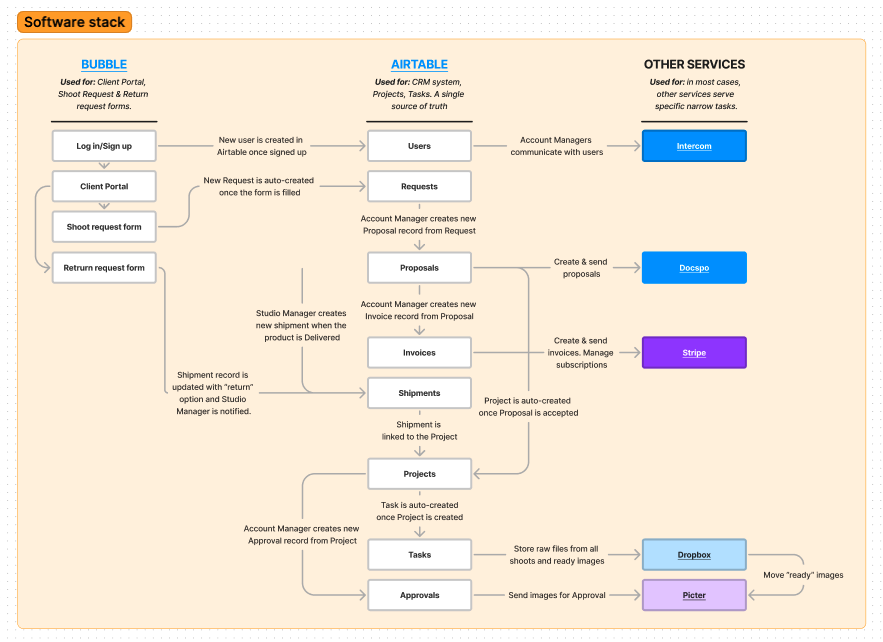 Here’s a high-level preview of how the multi-platform no-code stack looked:
