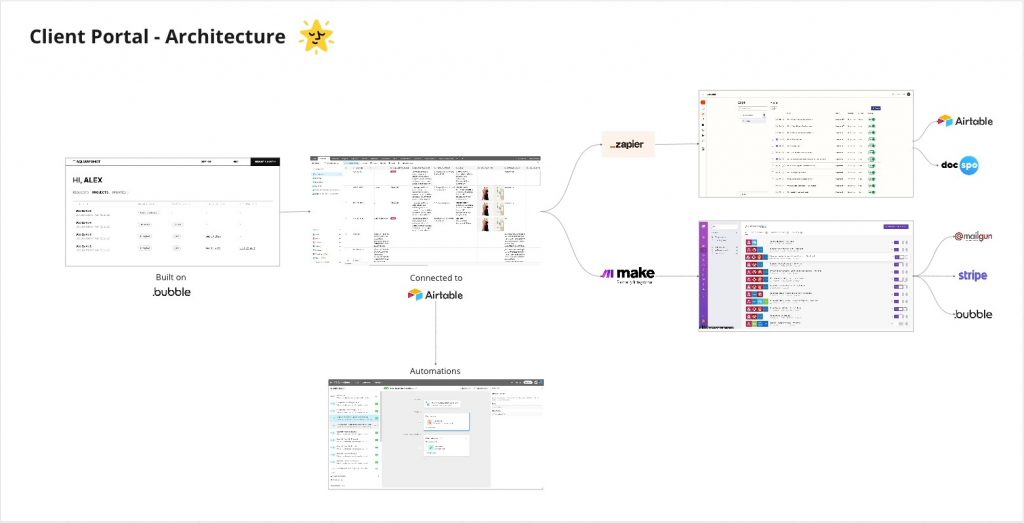 The solution had to be built on top of no-code platforms like Bubble, Airtable, Zapier, make (formerly: integromat), and had to be robust enough to seamlessly sync data between different platforms, while providing a single unified view to their team.