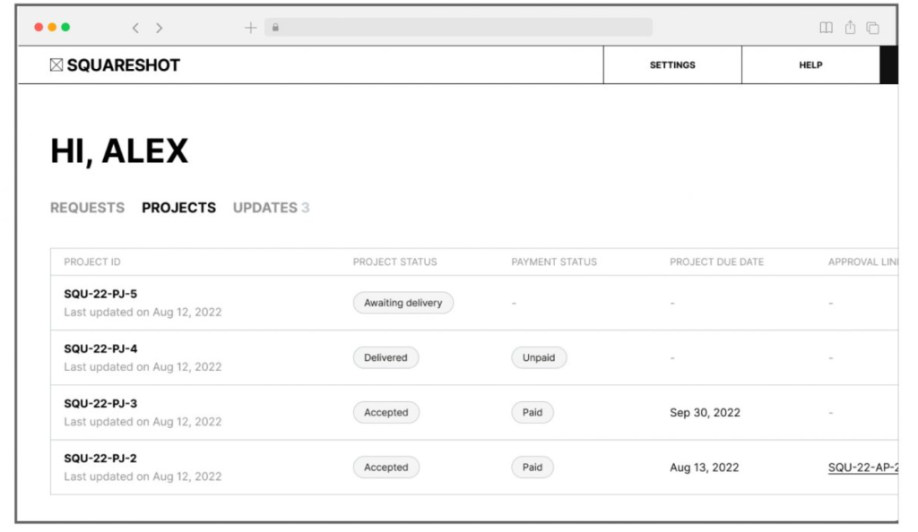 Squareshot’s client portal was designed to store all the client records in Airtable.